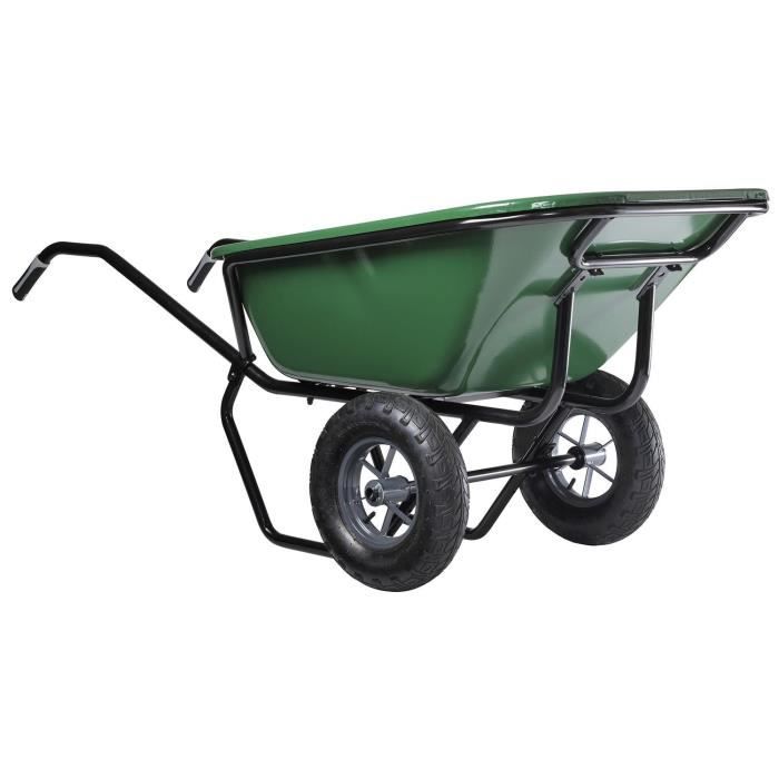 HAEMMERLIN Brouette EXP TWIN 230 P - Caisse peinte verte 230L - Châssis tube peint vert ø 32mm - 2 roues gonflées ø 400mm montées sur roulements a rouleaux - Jantes métal a rayons - Poignées bi-matieres - Charge utile 300kg
