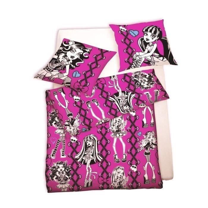 Parure MONSTER HIGH Fushia 100% Coton comprenant une housse de couette 140x200cm + 1 taie d'oreiller 65x65cm