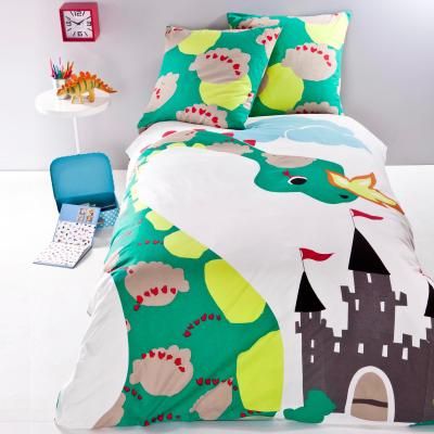 • Housse de couette rĂ©versible 1 ou 2 personnes en coton dragon et chateau FALKOR