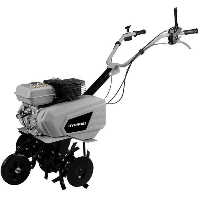 Motobineuse thermique 1 marche avant et 1 marche arriere, parfaitement adaptée aux potagers des particuliers car facilement maniable. 8 fraises démontables (largeur 28 cm, épaisseur 3 mm), largeur de travail 83 cm, transmission démontable par courroie et chaîne, guidon réglable hauteur 4 positions, roue avant escamotable pour déplacement aisé de l'appareil, moteur 4 temps 196 cm3 (démarrage manuel par lanceur), capacité réservoir carburant 1,6 litres, capacité réservoir huile 0,35 litres.
