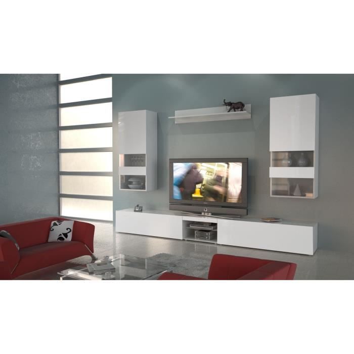 • NEVERLAND Meuble TV mural laqué blanc comprenant 5 éléments