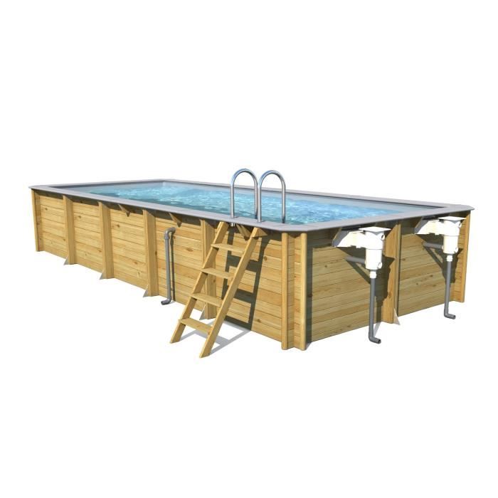Piscine bois 12x4 m Hauteur 1.46 m - Garantie 10 ans bois et liner - Fabriquée en FRANCE - Hors sol ou enterrée - Volume 63,84m3 - Liner 75/100 gris - Margelle composite grise - 2 Skimmers 2 Refoulements 2 projecteurs - Filtre a sable - 9,80 m3/h - Echelle sécurité extérieure bois - Echelle inox, Déchlorinateur, Bâche a bulles.