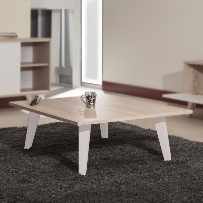 Table basse plateau finition chene Bardolino naturel, pieds blancs inclinés - Bicolore - Dimensions hors tout : LxHxP : 89 x 28,2 x 67 cm - Panneaux de particules mélaminés - Conditionnement en 1 colis - Livré en kit avec notice de montage