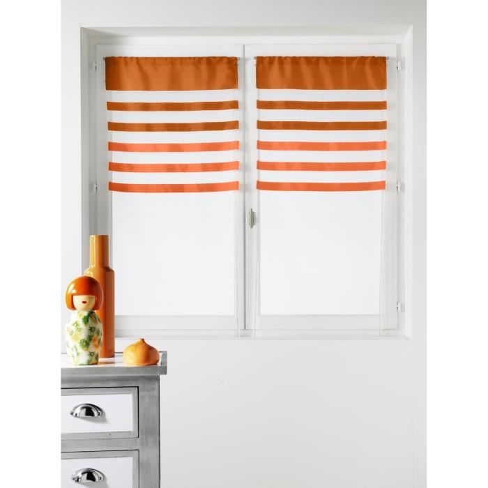 • Paire de vitrages voile rayé FLASH ORANGE 60x160cm