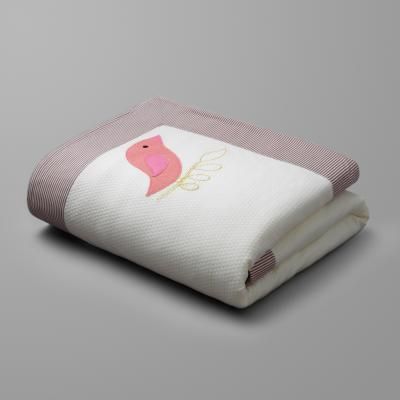 Ce plaid complète l'univers imaginé par Happy Garden.Maille fantaisie unie. Large biais en jersey rayé, rapporté sur le contour.Motifs souris et oiseau ap...