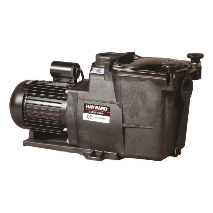 Pompe de filtration, modele SUPER PUMP HAYWARD SP1608XE11/1, en résine renforcée, auto amorçante avec moteur fermé et ventillé, raccordements en 1" 1/2, résistante a la corrosion chimique et saline en utilisation normale, couvercle transparent en Lexan a ouverture facile, faible niveau sonore et basse consommation électrique.