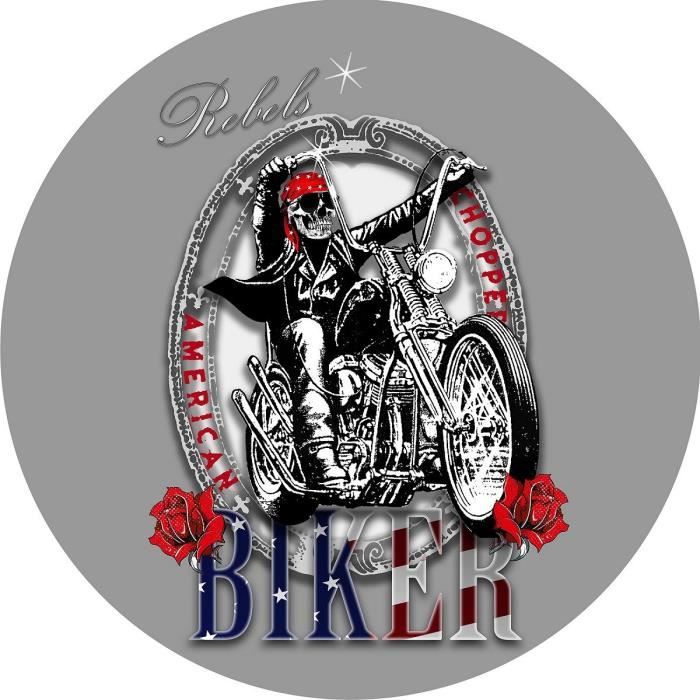Tapis rond 90cm velours imprimé biker