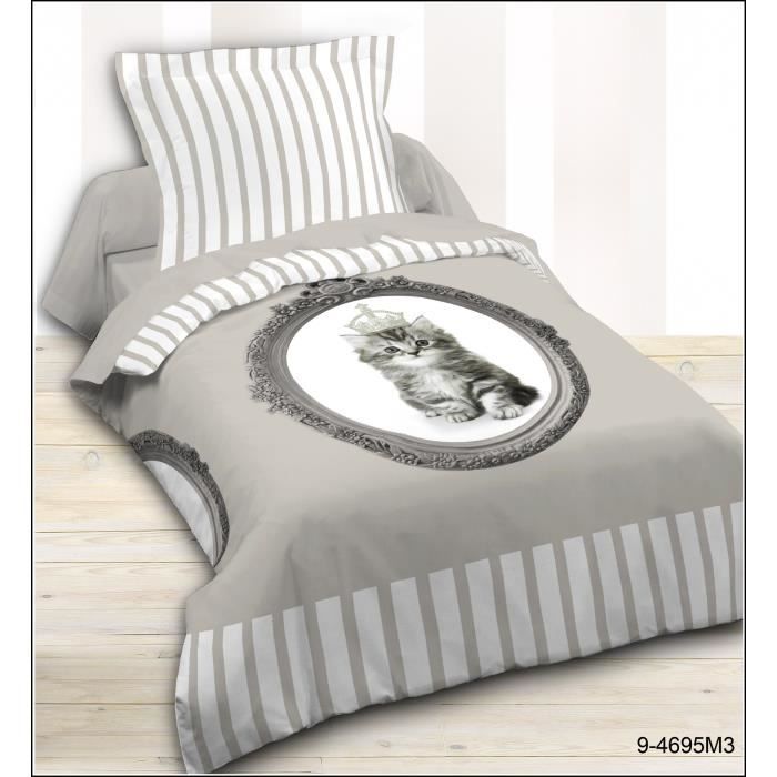 TODAY Parure de couette Happy Mistigri comprenant 1 housse de couette 140x200cm et 1 taie d'oreiller 63x63cm - 1 personne - Composition 100% coton 57 fils - Fibre naturelle