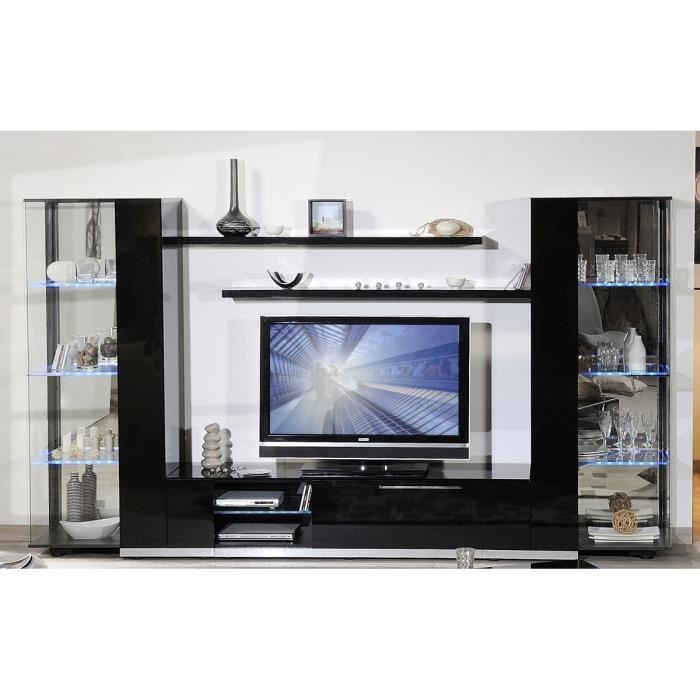 La composition TV VERTIGO (300x45x170 cm) laquée noire habillera parfaitement votre salon. L'ensemble comprend un meuble TV, 2 vitrines et 2 étageres. Il fait preuve de fonctionnalité grâce a ses mutliples rangements, et est compatible avec toutes les tailles d'écran. LED non incluse - Fabrication française - Garantie 2 ans.