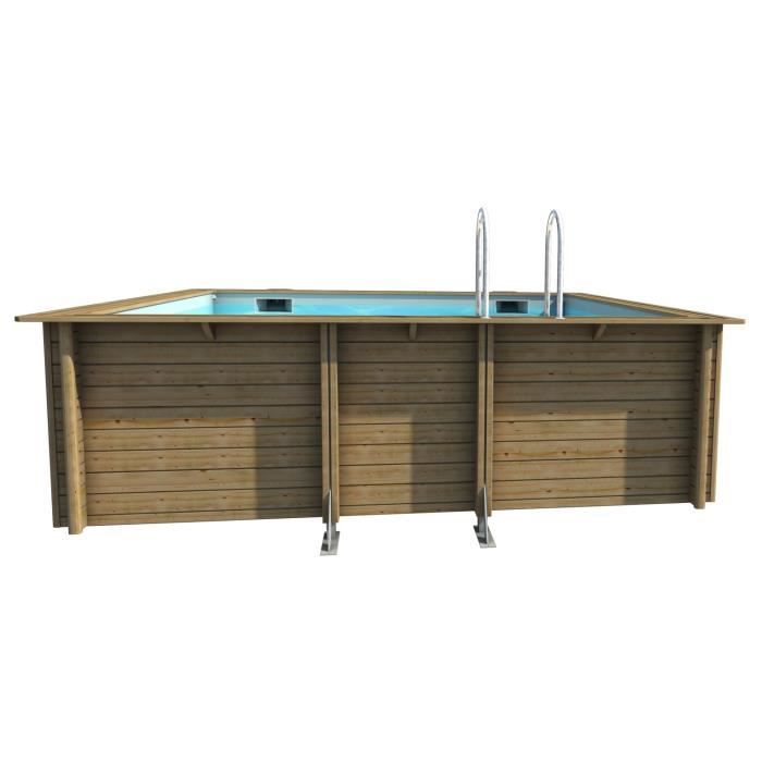 Piscine bois carrée 4x3 m Hauteur 1.33 m - Garantie 10 ans stucture bois et liner - Fabriquée en FRANCE - Hors sol ou enterrée - Volume 19,36 m3 - Liner 75/100 bleu -Margelle pin - Madriers en 45 mm -2 Skimmers 2 Refoulements - Filtre a sable D500 vanne 6 voies - 9,80 m3/h - Echelle de sécurité extérieure bois - Echelle inox.