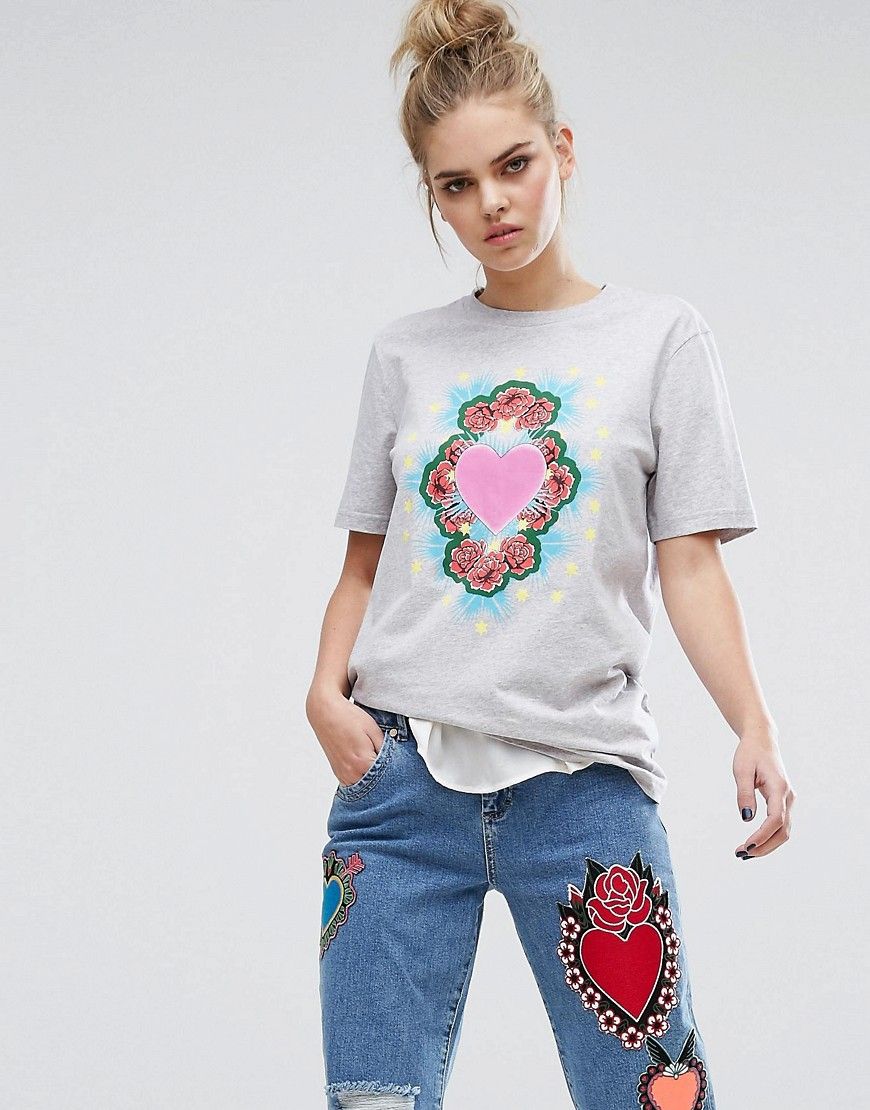 • House Of Holland - T-shirt boyfriend motif cœur et nuage - Gris