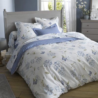 Housse de couette imprimée fleurettes et rayures CAMPANULE