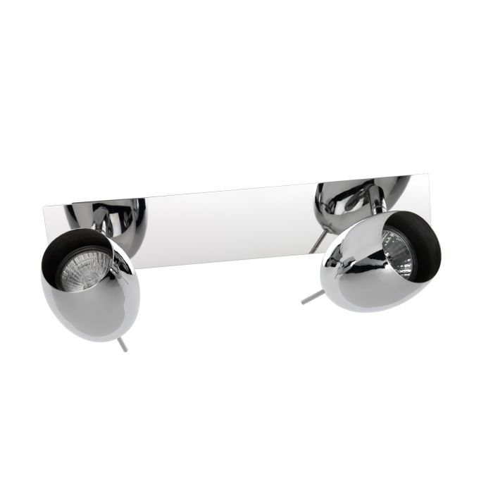 Spot 2 lumieres ivo en fer chrome l26 h13,7.base 26x4 - reflecteur d5,5 l10.hauteur totale 13,7 - Ampoules requises : 2XGU10 maxi 9W - non inclues - Voir nos propositions d'ampoules ci-dessous