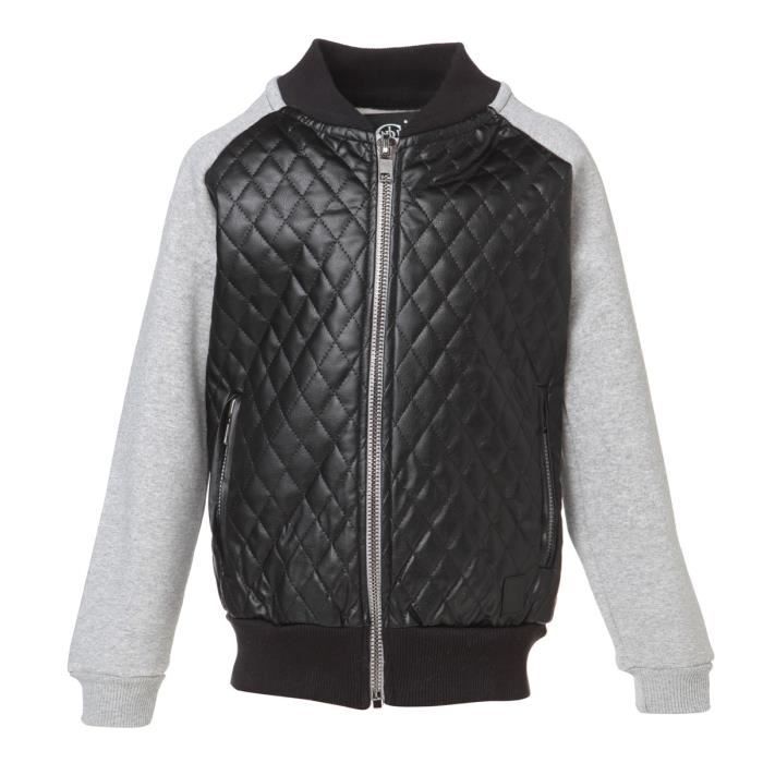 Veste blouson col montant, 65% coton, 35% polyester, gris chiné et noir.