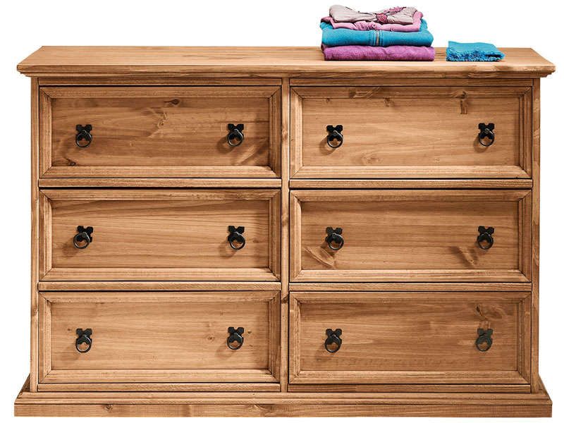 Une commode au parfum venu d'ailleurs!Les Plus produit:- Pin massif- Finition cirée- Ferrures métal noir- 6 tiroirsEnvie d'une touche d'exotisme dans votre intérieur, cette commode sera parfaite avec son bois ciré et ses ferrures typées esprit colonial.Réalisée en pin massif ciré, cette commode 6 tiroirs est pratique pour le rangement. Fond en contreplaqué ou en panneau de fibres médium ciré.Ferrures en métal noir. 6 tiroirs (dim. utiles d’1 tiroir : L49 x H19,5 x P35,5 cm).Dimensions hors tout : L120 x H78,5 x P45 cm.