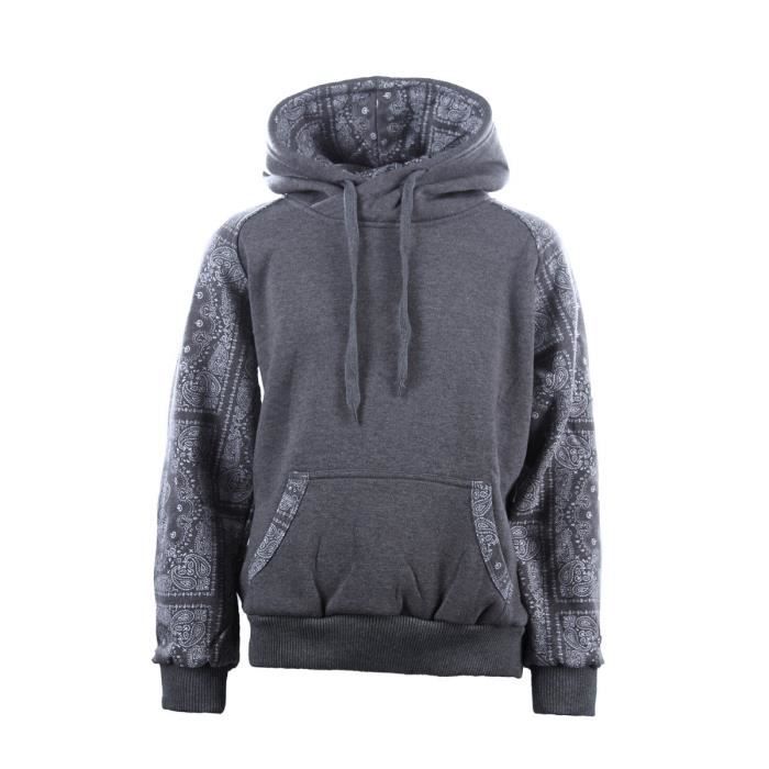Sweat a capuche, 65 % polyester, 35 % coton, gris foncé. Bords en côtes, manches longues imprimées.