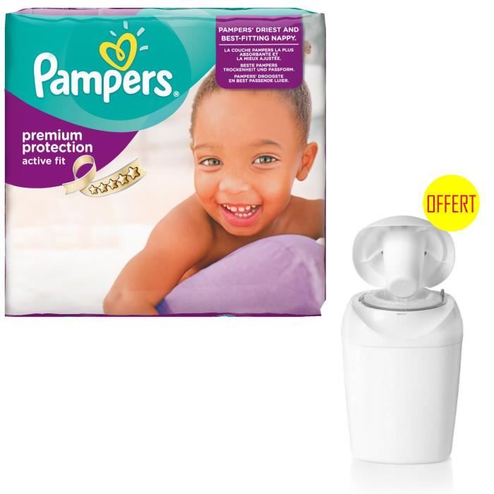 • PAMPERS Active Fit Taille 5+ 13 a 27 kg Pack 1 mois de couches x124 + Poubelle a couches offerte