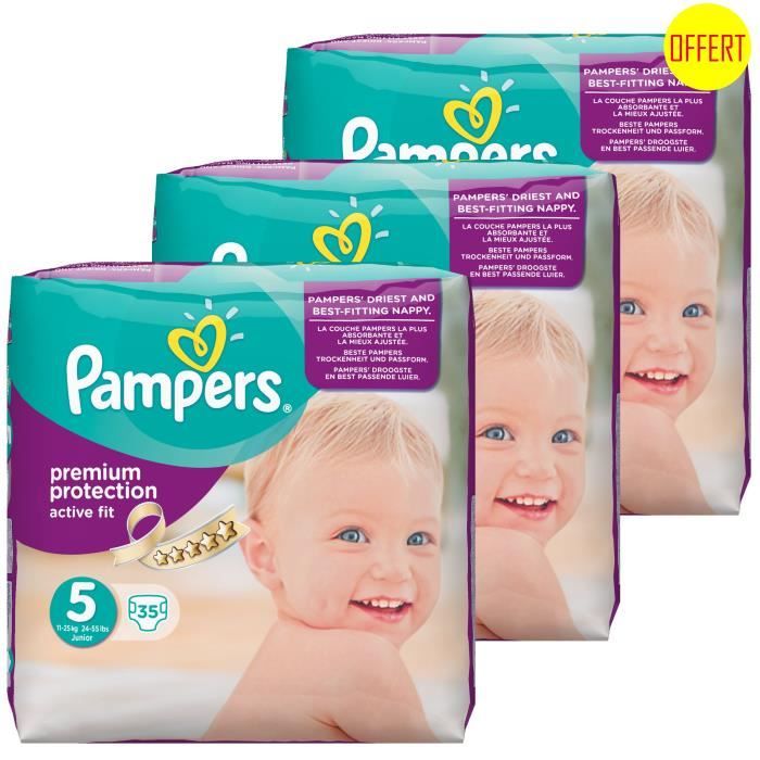 PAMPERS Active Fit Taille 5 (Junior) 11 a 25 kg Géant 3x35 couches