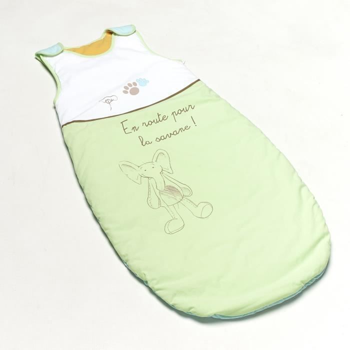 "En route pour la savene". Pour que Bébé passe des nuits sereines au pays des reves, tout en sécurité et en douceur. 100% coton. Garnissage ouate 100% polyester. Ouverture latérale zippée et boutons pression. De 6 a 36 mois - Garçon et fille - Livré a l'unité