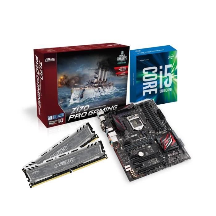Contient : processeur Intel? Skylake Core? i5-6600K + carte m?re Asus Z170 PRO GAMING + mémoires Crucial kit 8Go (2 x 4Go) Ballistix Sport LT DDR4 2400MHz