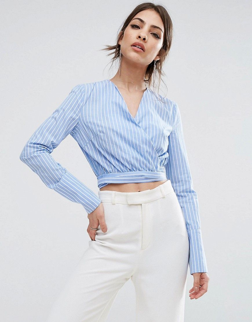 • Lavish Alice - Chemise cache-cœur rayée avec lien à nouer - Multi