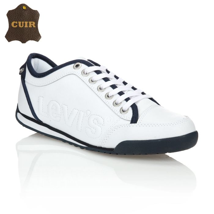 Baskets en cuir blanc, tige basse et chaussant en textile, semelle extérieure en caoutchouc.