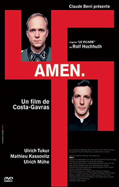 En février 2002, la découverte de l’affiche du film a provoqué une violente réaction de la part de l’épiscopat français (réalisée par Oliviero Toscani, elle superposait une croix gammée et une croix chrétienne). Mais l’œuvre de Costa-Gavras, librement inspirée du Vicaire, la pièce sulfureuse de Rolf Kochhuth, se situe bien au-delà de la provocation et de la controverse. Extrêmement sobre et d’une efficacité redoutable (le film est bercé par le défilé incessant et obsédant des trains de la mort, dont on ne voit jamais le chargement), Amen. apparaît non seulement comme un témoignage bouleversant sur l’attitude hypocrite et honteusement silencieuse du Vatican durant l’Holocauste, mais aussi sur la lâcheté en temps de guerre. Mêlant adroitement les faits réels (Kurt Gerstein a réellement existé) et la fiction, le film s’impose comme une œuvre d’un formidable intérêt pédagogique.