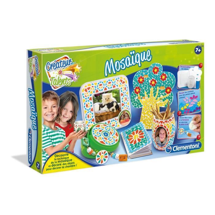 Apprends les techniques de la mosaique et réalise un superbe cadre photo, un magnifique pot a crayons et de nombreux autres accessoires ! Tu pourras ainsi décorer ta chambre avec tes créations ou les offrir a tes amis ! - Mixte - A partir de 7 ans - Livré a l'unité