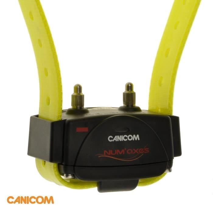 Collier de dressage pour chien commun aux 7 télécommandes de la gamme CANICOM - Codage radio collier/télécommande tres simple : l'utilisateur peut recoder son collier indéfiniment soit avec la meme télécommande, soit avec une nouvelle télécommande de la gamme CANICOM - Indicateur d'usure de pile collier - Collier étanche a l'immersion.