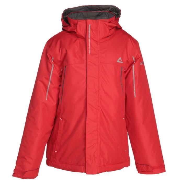 Blouson de ski a capuche, Tissu ARED 5000 mm polyester imperméable et respirant, Rouge. Manches longues, 2 poches inférieures zippées, finition déperlante.