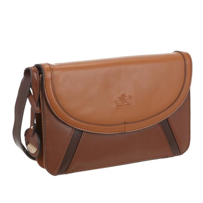 Sac a main en polyuréthane, marron, fermeture par un bouton pression. Une bandouliere. Un compartiment principal.