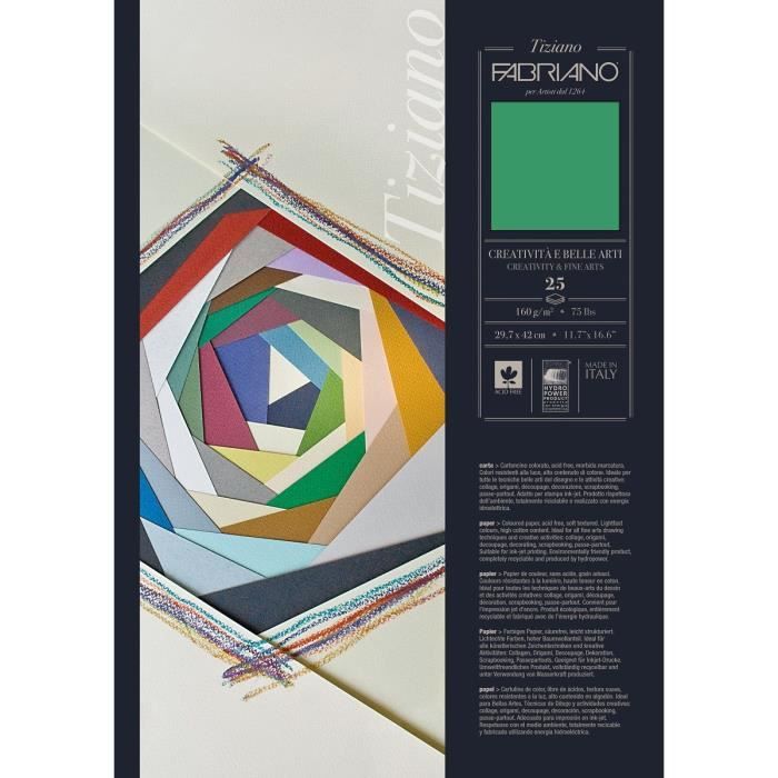 FABRIANO Bloc Tiziano 160g A3 30f 6 Coul. Pastels