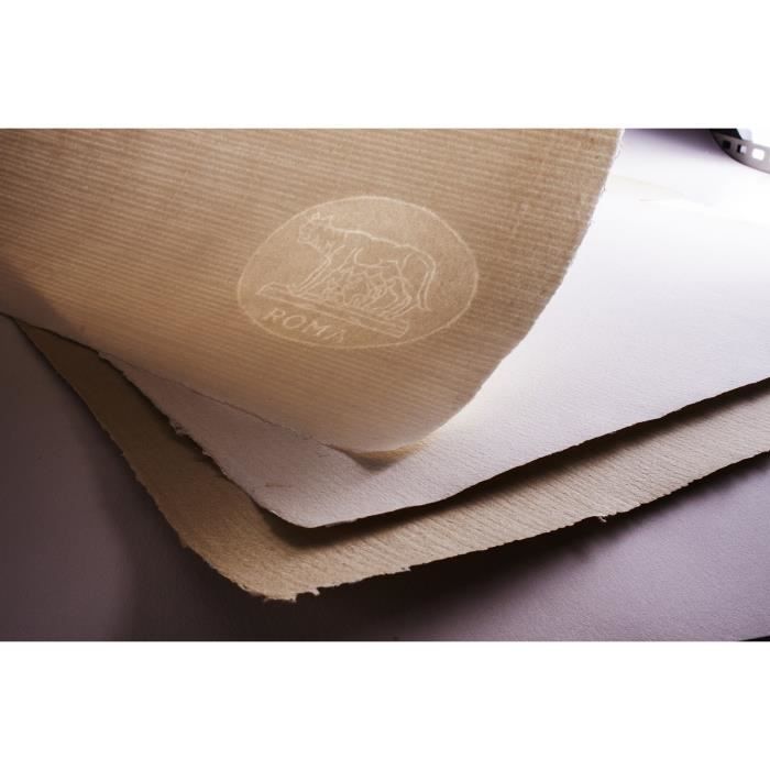 Papier fait main, vergé et filigrané. Produit 100% coton, 130 g/m², blanc. Excellent pour le pastel et toute technique seche.