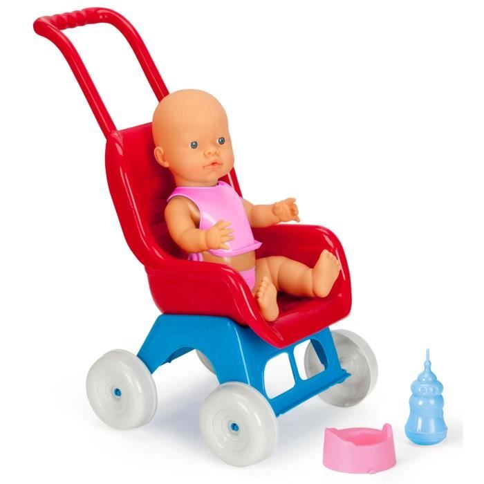 Mon bébé pipi et sa poussette - Coloris Rose - Bébé mouilleur de 40 cm qui fait pipi apres avoir bu son biberon - Vendu avec un biberon, un pot et une poussette - Fille - A partir de 3 ans - Livré a l'unité