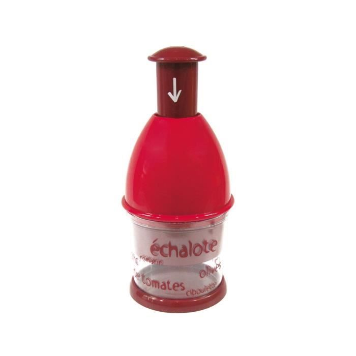 Quelques pressions sur le piston placé sur le haut du hâchoir, font pivoter la lame en acier inoxydable et hâche en un instant tous les aliments. A l'aide de ce hâchoir vous pourrez réaliser des persillades, des piments hâchés, des échalottes et oignons émincés, ou des concassés de tomates.