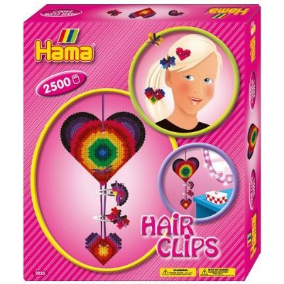 Boîte cadeau Pinces a cheveux. Env. 2 500 perles, 1 grande plaque coeur réf. 233, 2 barrettes, 1 ruban - violet, feuille de modeles en couleur, instructions et papier a repasser. Fille. A partir de 5 ans. Vendu a l'unité