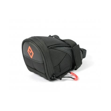 Sacoche de Selle, noir, systeme de fixation par auto-agrippant, ouverture zippée. 18 x 8.5 x 10.5 cm.