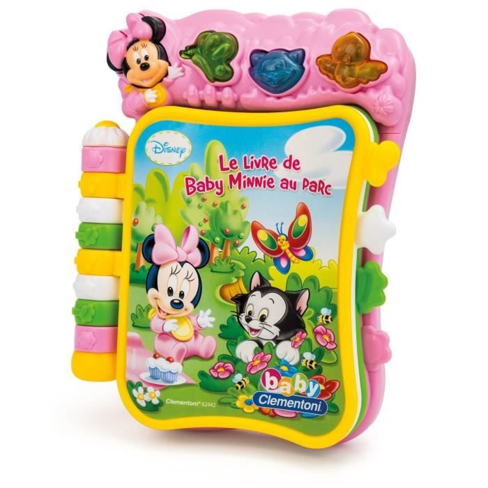 CLEMENTONI -Livre Musical Minnie -Un livre interactif éducatif sur le theme de la jungle pour s'amuser et s'éveiller avec Minnie - 7 pages illustrées accompagnées de chansons et comptines pour divertir Bébé en musique - 3 touches lumineuses en forme d'animaux et une touche Minnie - Fille - A partir de 9 mois - Livré a l'unité