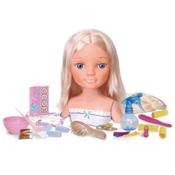 Tete a coiffer et a maquiller Blonde. Les petites filles pourront créer les plus belles coiffures pour Nancy mais aussi la maquiller grâce a un coffret qui inclut de nombreux accessoires pour que les petites filles deviennent de véritables stylistes de mode - Fille - A partir de 4 ans - Livré a l'unité