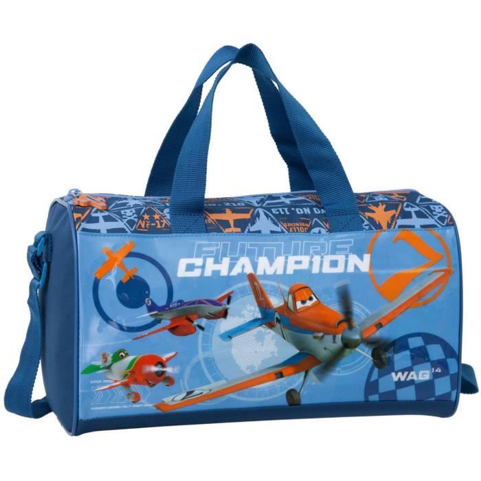 Sac de sport en microfibre et PVC bleu. Deux anses fixes, une bandouliere ajustable. Un compartiment principal zippé.