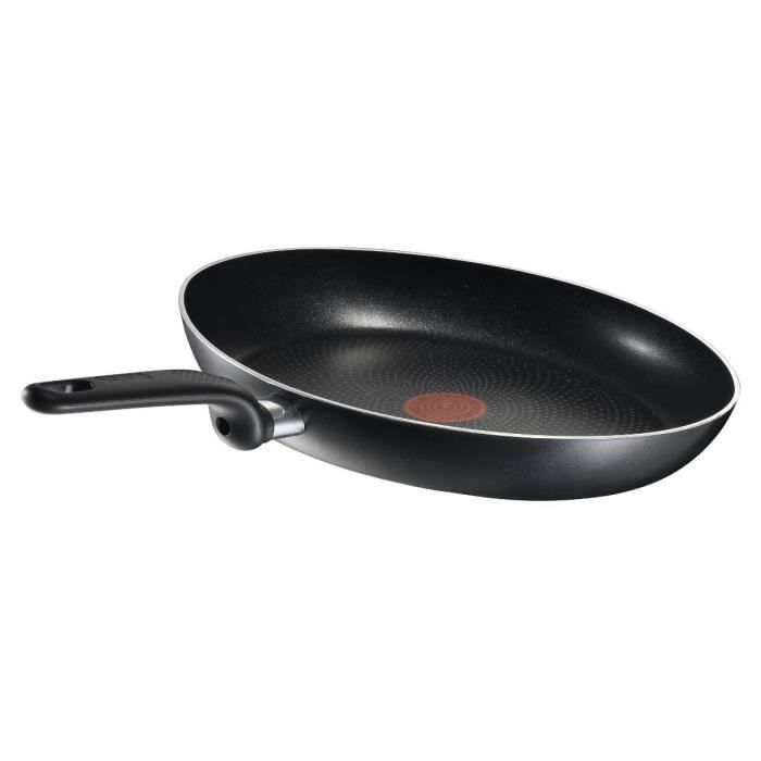 Poele poisson IDEAL de TEFAL en aluminium, coloris : noir - Revetement antiadhésif facile a nettoyer - Thermospot® qui devient monochrome quand la température optimale de cuisson des aliments est attente 180°C - Tous feux sauf induction. Dimension : Ø 36 cm