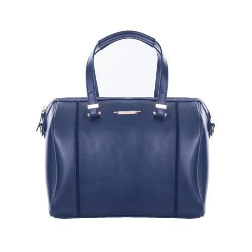 Sac porté main en cuir bleu, fermeture zippée. Deux anses avec une bandouliere. Un compartiment principal.