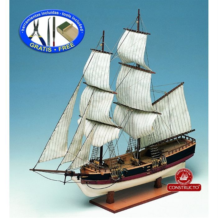 Ce navire a voile de pres de 40m de long, était pourvu de deux mâts, et gréé en croix - Surtout utilisés au 18e et 19e siecle comme navires de commerce et aussi comme navires de guerre légers - Garçon et fille - Livré a l'unité