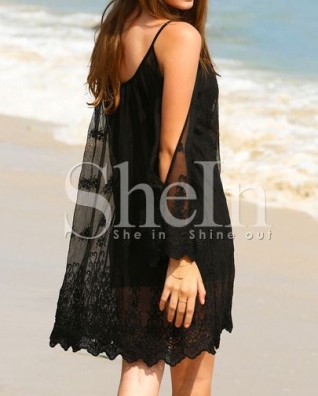 Robe longue manches fendues avec dentelle crochet
