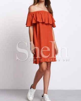 Robe plissée col bateau -orange