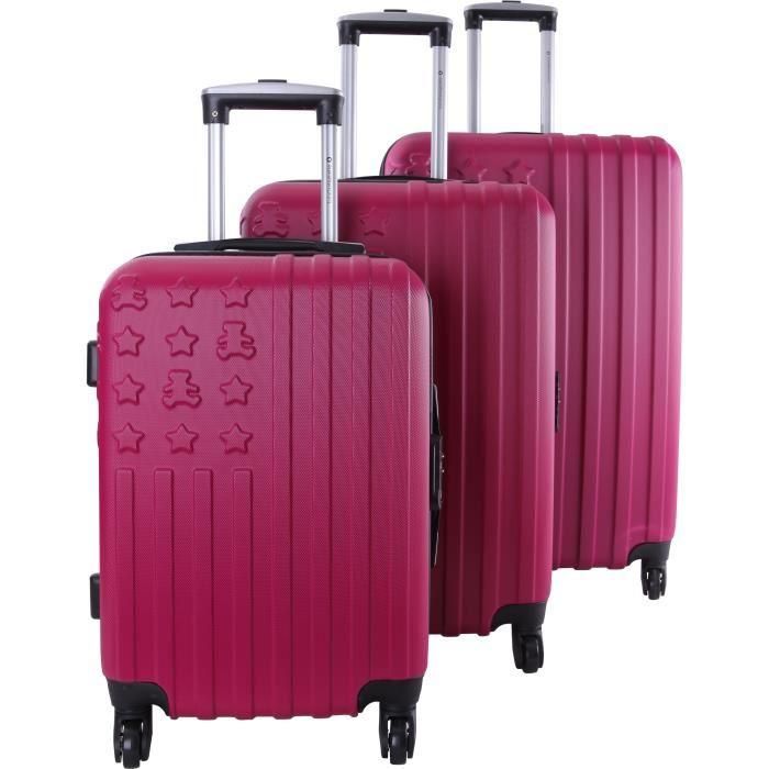 Lulu castagnette - Set de 3 Valises Rigide ABS 4 Roues 55-65-75cm Fuchsia