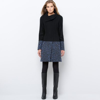 Soft grey - Manteau bicolore uni et imprimé léopard