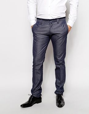 • Antony Morato - Pantalon de costume slim en chambray - Bleu foncé