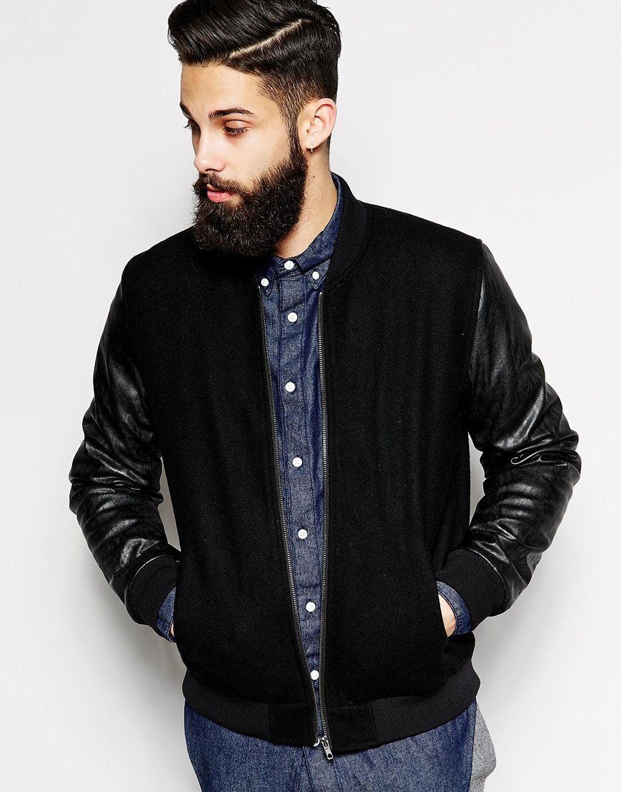 Buy ASOS - Blouson aviateur en laine avec manches en, blouson Asos for men on Pickture, in trends like ASOS, Blouson, laine, Noir