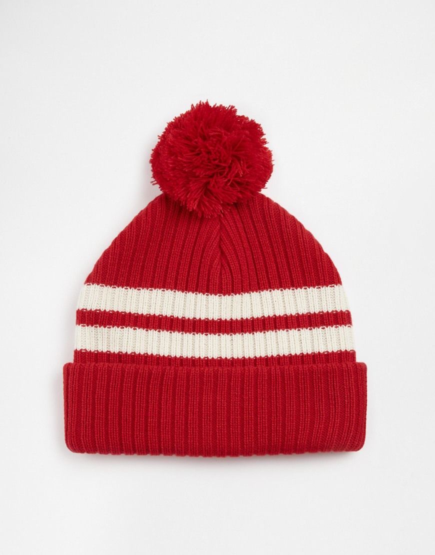 • ASOS - Bonnet rayé à pompon - Rouge
